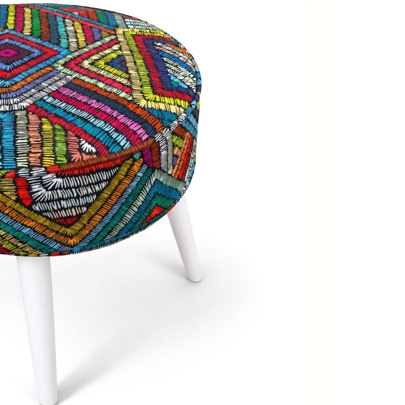 Idealan za sve koji žele da unesu vedar i razigran akcenat u svoj prostor, ovaj tabure u šarenom štofu Print 07 sa nogama od belog drveta donosi dinamiku i toplinu u enterijer. Njegov zanimljiv dezen lako osvežava ambijent i daje prostoru poseban karakter.